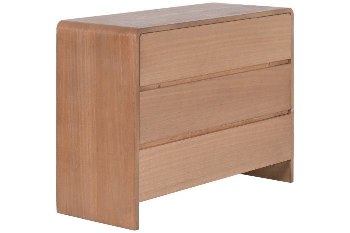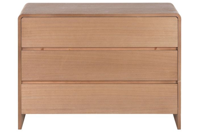 Esta cómoda de madera natural cuenta con 3 cajones amplios, pensados para organizar ropa, textiles o accesorios del día a día, manteniendo el orden de forma sencilla y práctica.